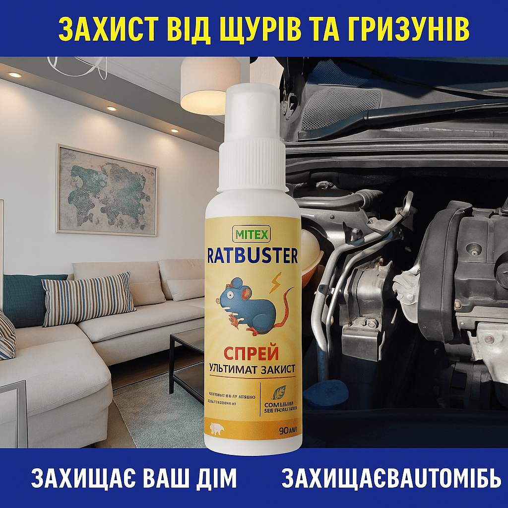 Мав проблему з мишами в гаражі — дроти, авто, одяг. Спробував цей спрей, і вже тиждень спокій. Гарне рішення для власників машин і комор.